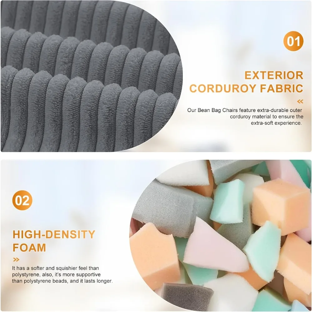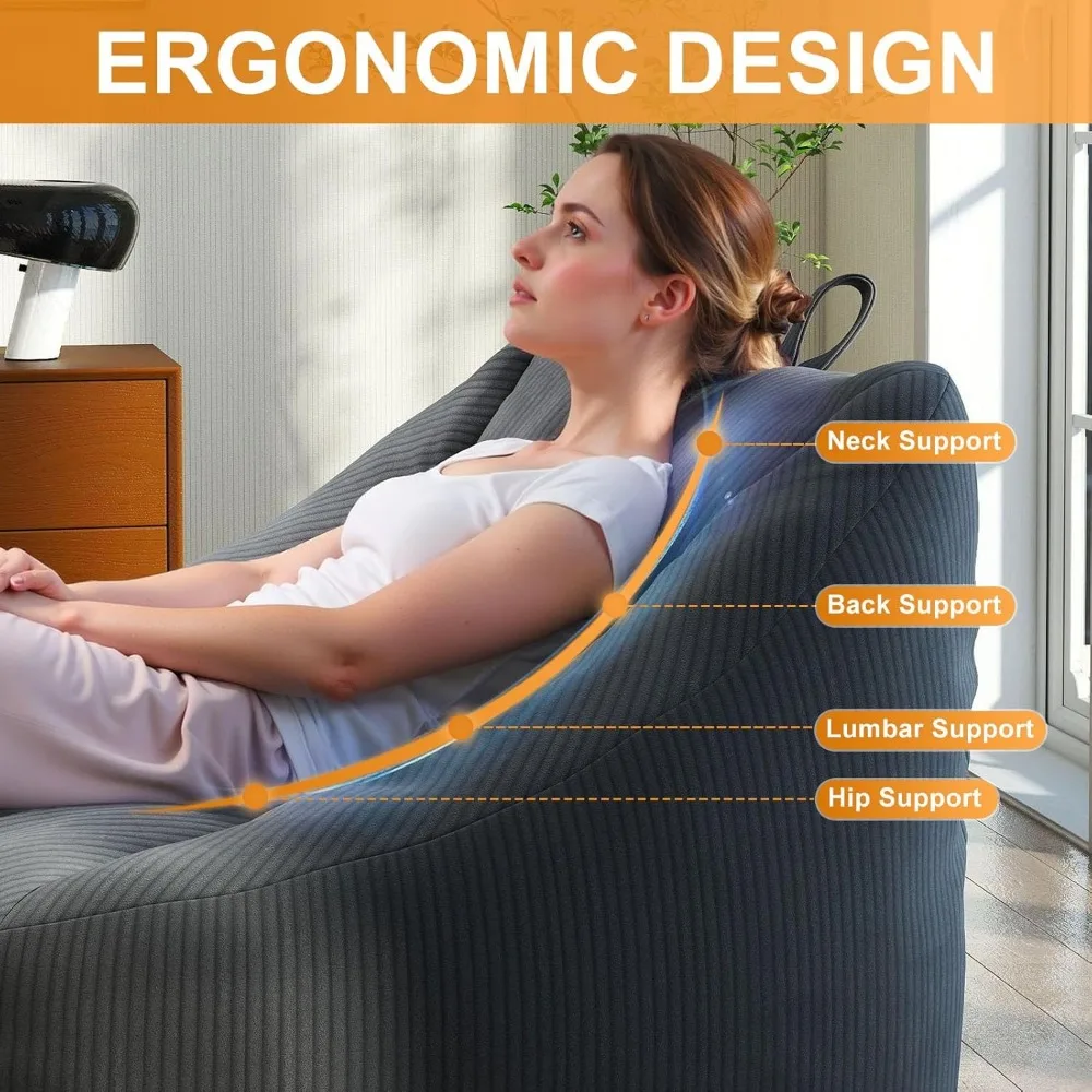Bean Bags Chairs for Adults, Large Comfy Corduroy Beanbag Couch with Armrests Shell-Shaped Lazy Floor Sofa for Living Room, Bedr