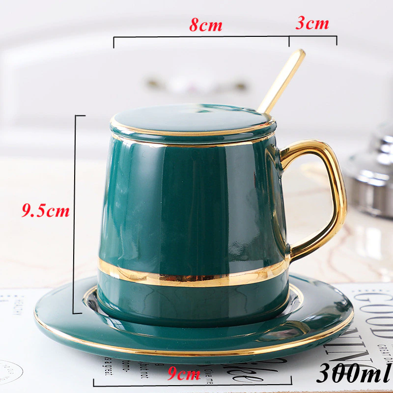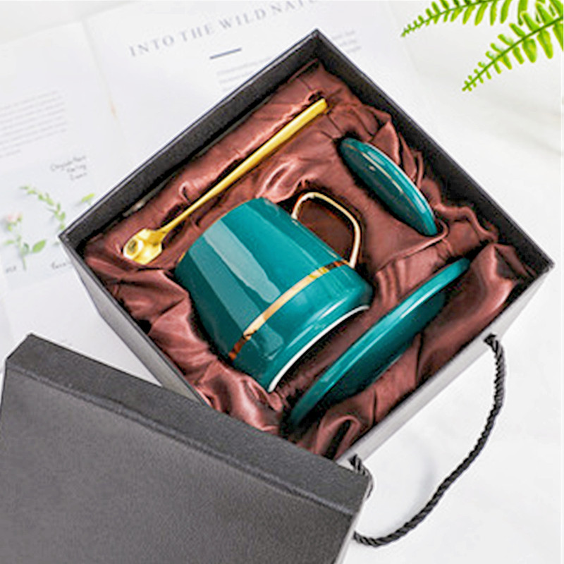300ml Gift Package Ceramic Mug with Lid Spoon and Saucer Lovers Coffee Mug Creative Coffee CupsCeramic Coffee Cup Set Drinkware