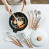 Wooden Handle: The spatula is equipped with a wooden handle that offers a comfortable grip. The wooden material provides a natural and ergonomic feel, making it easy to maneuver and control while cooking